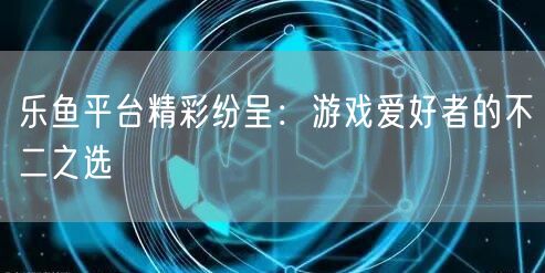乐鱼平台,一个为游戏爱好者量身打造的不二之选。在这里,你可以找到最热门的游戏,体验最精彩的游戏内容。乐鱼平台的游戏种类丰富,无论是喜欢动作冒险、竞技对战还是休闲益智的玩家,都能在这里找到心仪的游戏。